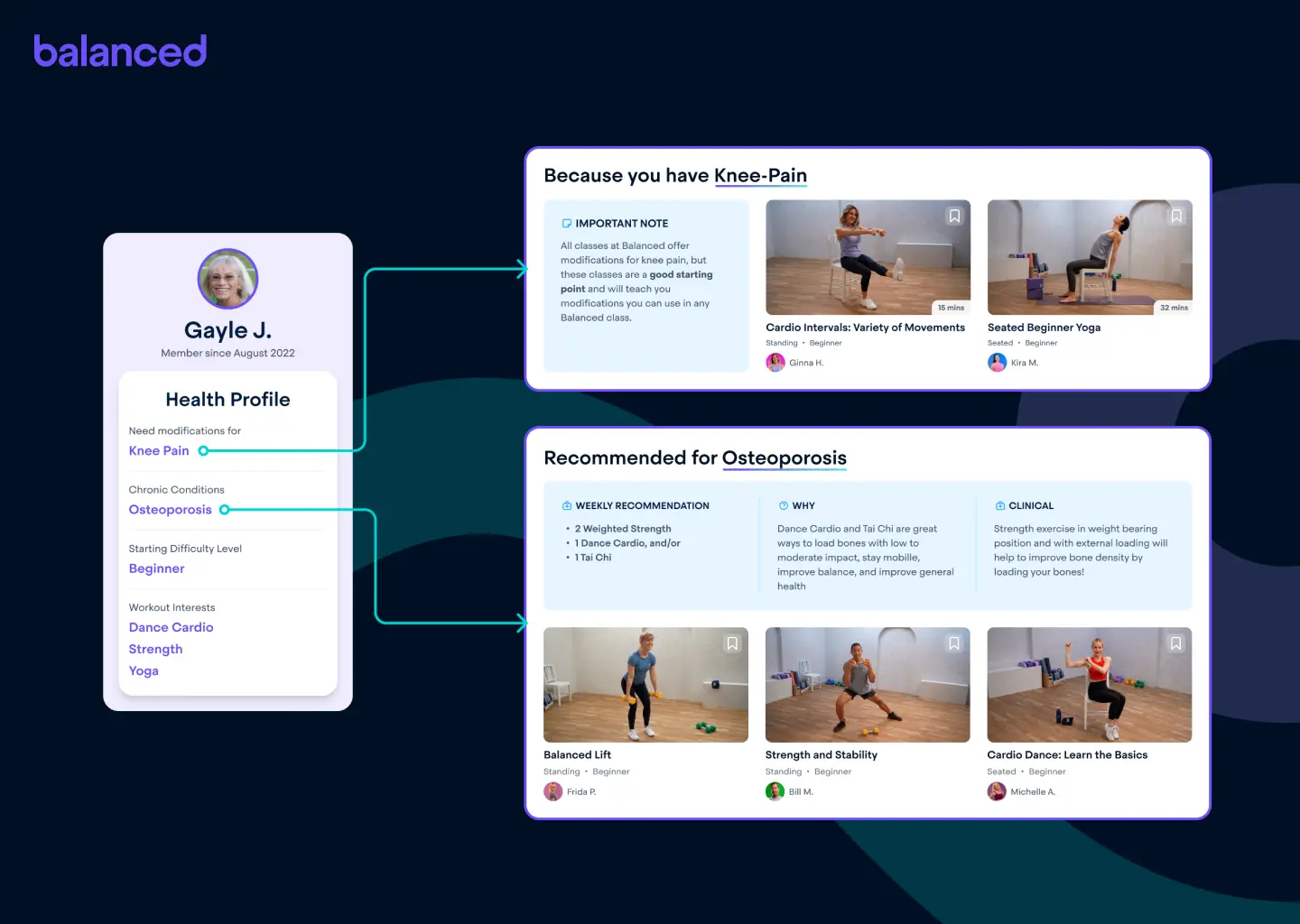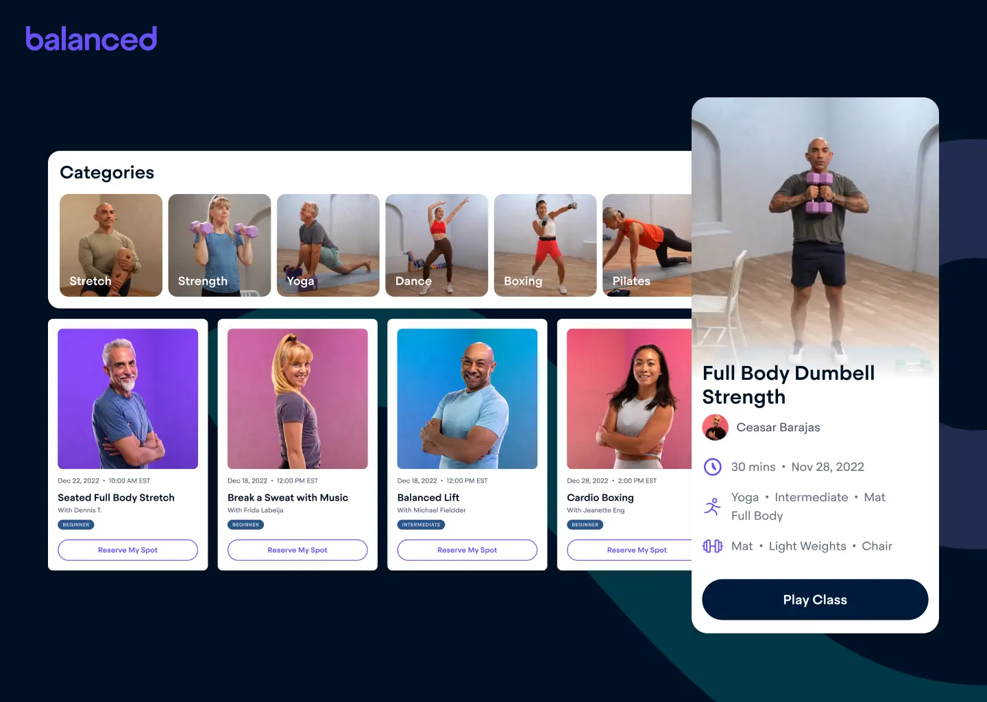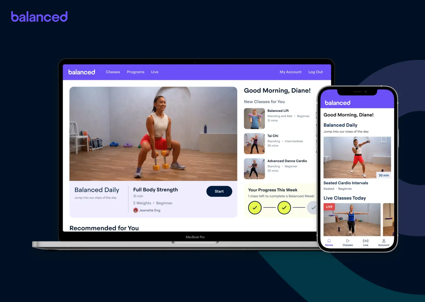 I was the founding product designer, then the Head of Product & Design for Balanced, a new fitness platform for healthier aging.