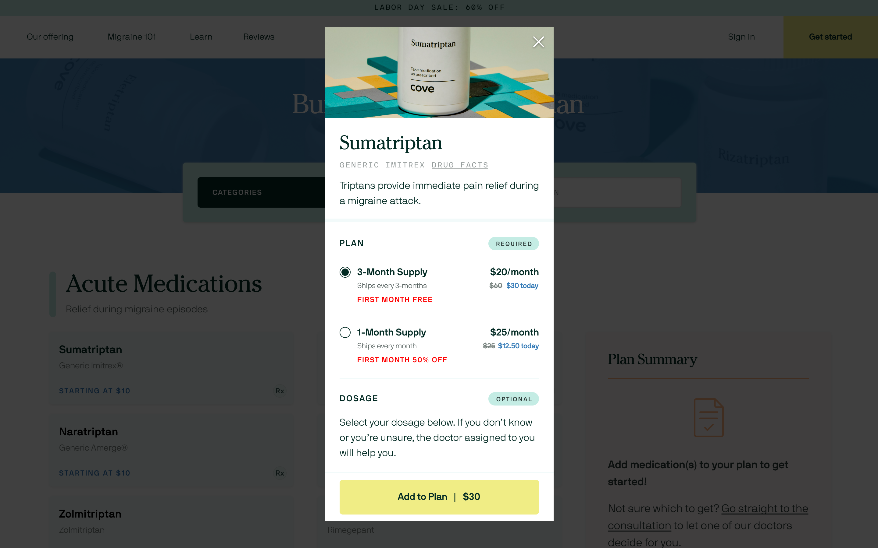 Cove, a brand under Thirty Madison, is the go-to destination for migraine sufferers to get treatment online. I was the first in-house product designer and design manager leading all design efforts in conversion, retention, and partnerships.